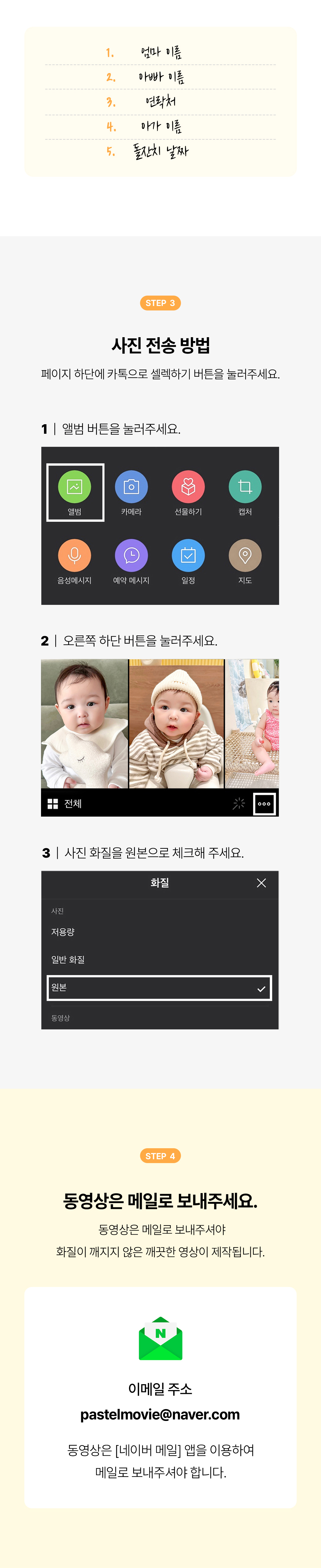 완성된 동영상은 MP4 파일로 이메일을 통해 보내드립니다.)