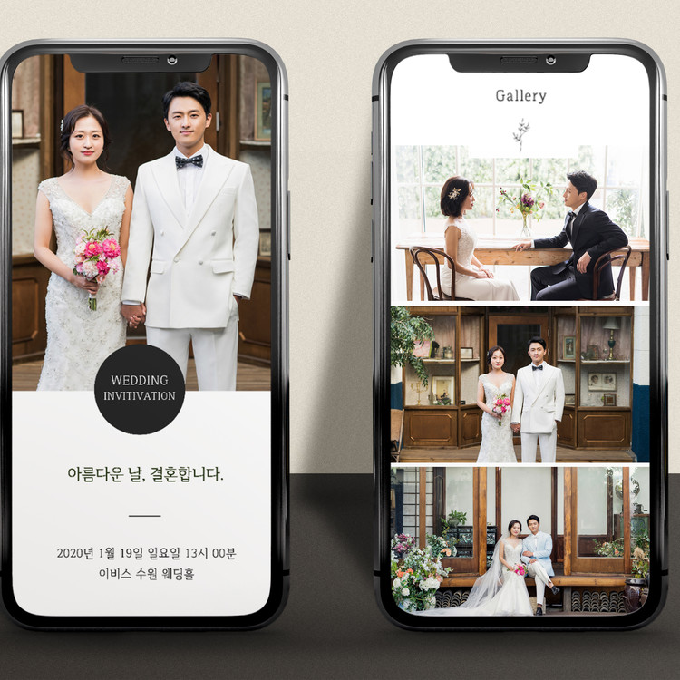 모바일 웨딩 청첩장 - 블랙 앤 화이트